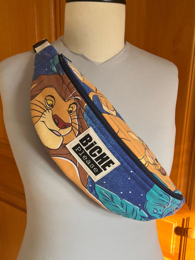 Fabriquée à la main à partir d'un drap d'enfant et d'une chute de tissus pour la doublure. L'étiquette est imprimée à la main en linogravure, donc chacune d'entre elle est unique.